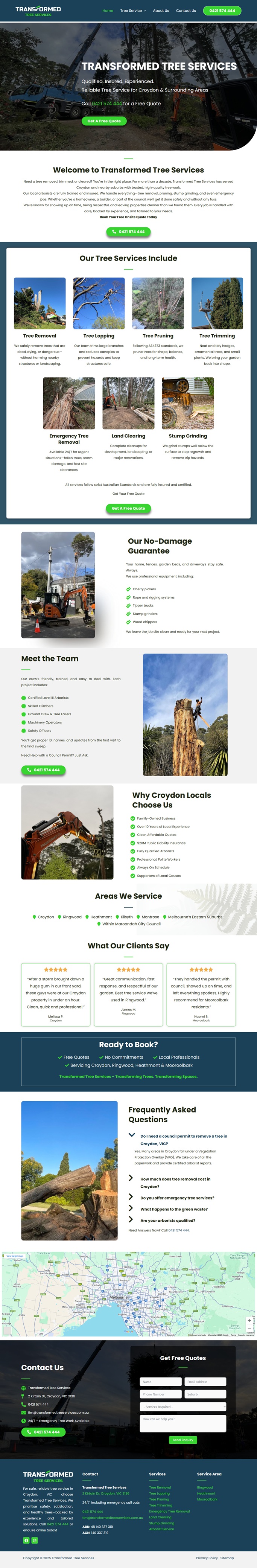 Transformed Tree Services delivers a comprehensive suite of arboricultural solutions in Croydon and surrounding suburbs, with a reputation built upon safety, expertise, and reliable customer service. With over ten years of local experience, the company offers services such as tree removal, pruning, trimming, stump grinding, emergency removal, land clearing and more. Our staff—certified Level III arborists, skilled climbers, machinery operators, and safety officers—ensure each job meets strict Australian standards.